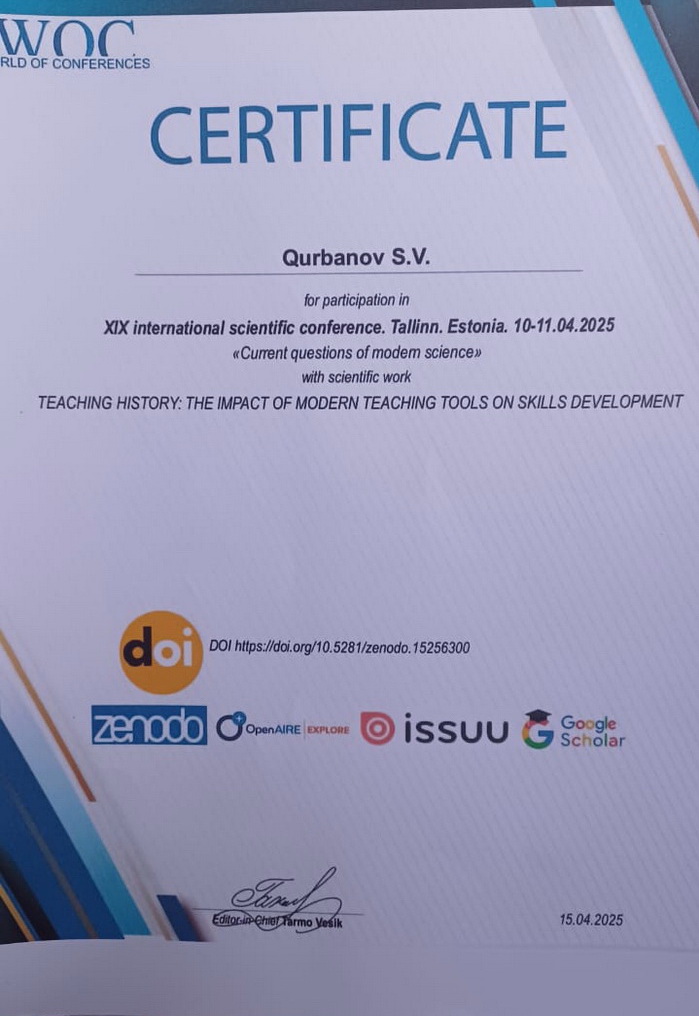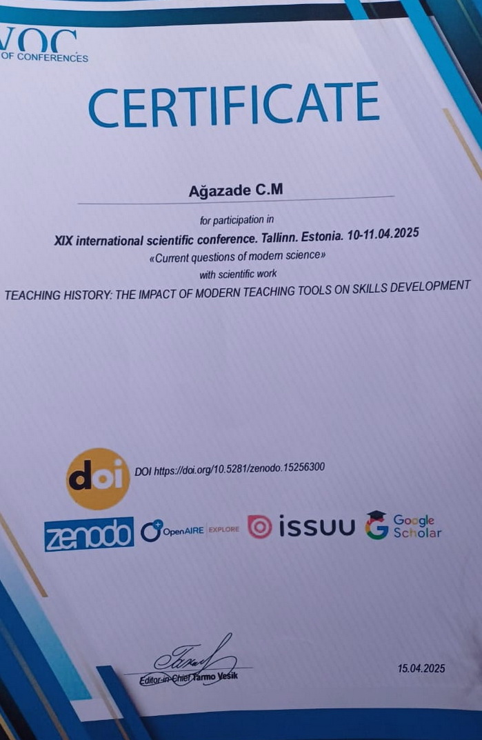 Beynəlxalq elmi konfransda tələbələrimiz "Teaching history: The impact of modern teaching tools on skills development"(Tarixin tədrisi: müasir tədris alətlərinin tədris bacarıqlarının inkişafına təsiri) adlı məqalə ilə çıxış ediblər. Məqalə konfrans iştirakçılarının böyük marağına səbəb olub.