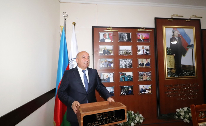 Bakı Dövlət Universitetinin Qazax filialının direktoru, dosent Arif Rüstəmov tədbiri açıq elan edərək iştirakçıları, şəhid ailələrini salamlayıb, 8 Noyabr – Zəfər Günü münasibətilə səmimi ürək sözlərini səsləndirərək xalqımıza daim qələbələr qazanmağı arzulayıb. Bugünkü şanlı Zəfərimizə görə Müzəffər Ali Baş Komandan Prezident İlham Əliyevə, canlarını Vətən yolunda fəda edən şəhidlərimizə, sağlamlığını itirən qazilərimizə borclu olduğumuzu qeyd edib. Tədbirdə iştirakına və BDU-nun Qazax filialının kollektivinə hər zaman verdiyi yüksək dəyərə görə rayon rəhbərinə dərin minnətdarlığını bildirib.