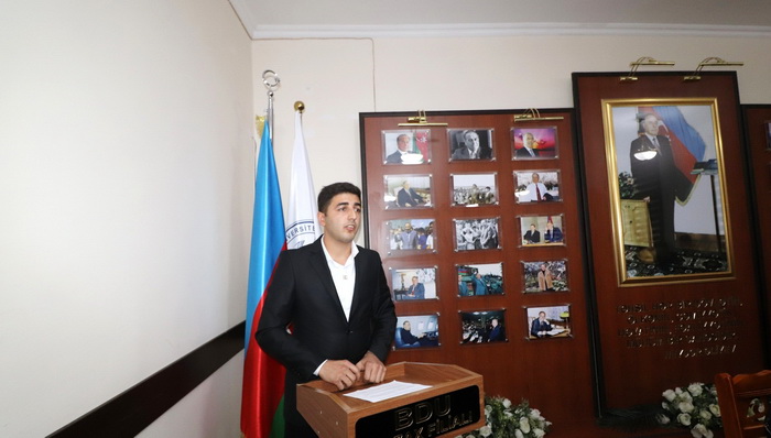 Tədbir iştirakçıları əvvəlcə filialın foyesində Vətən yolunda canlarından keçən şəhidlərin xatirəsini əbədiləşdirən guşə ilə tanış olublar. Həmçinin, filialın məzunu olmuş şəhid leytenant Məhəmməd Məmmədovun xatirəsinə yaradılmış guşəyə baxaraq əziz xatirəsini ehtiramla anıblar.