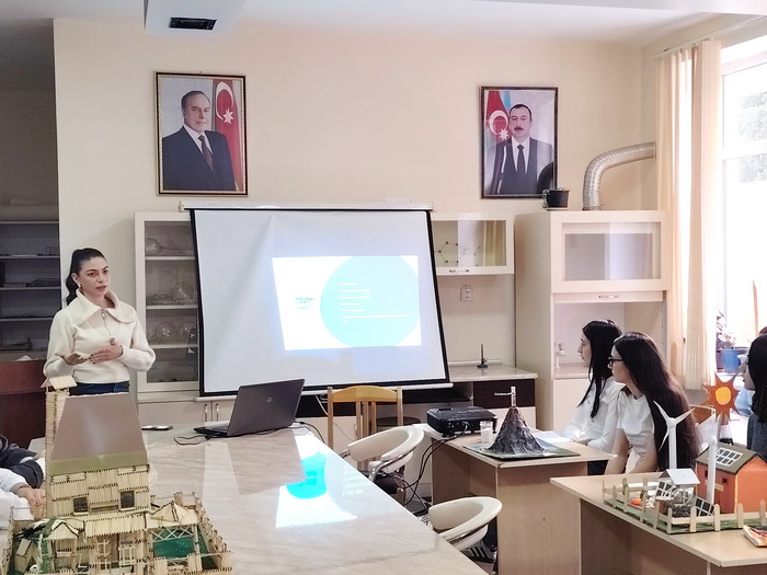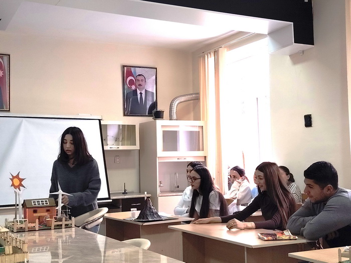 Sonra tələbələrdən Aysel Əlizadə, Aynur Əhmədova, Aidə Tanrıverdiyeva, Anara Zeynalova, Rəşad Cəfərov “Alternativ enerji alınması”, Aytac Qasımzadə, Zeynəb Edilova, Nərmin Hətəmova “İşıq senzoru ilə LED idarəetmə”, Nigar Abdullayeva, Nurçin Əliyeva isə “Günəş paneli vasitəsilə kənd təsərrüfatı sahələrində enerjiyə qənaət olunması” layihələrini təqdim ediblər. Eyni zamanda, təqdimatda tələbələrdən Nuray Gürzalıyevanın “Sirkə ilə soda reaksiyası əsasında vulkanın püskürməsi” modeli, Fidan Rüstəmova və Günay Kərimlinin, Ləman Bağırova və Əfsan Hüseynovanın isə STEAM layihələri təqdim olunub.