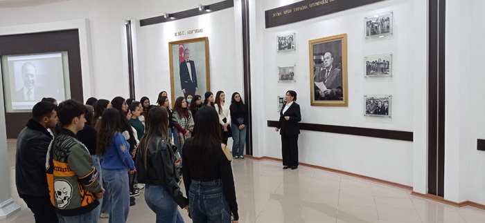 Anım Günü ərəfəsində mütəmadi olaraq dahi şəxsiyyətin adını daşıyan muzeydə olan tələbələr Ümummilli Liderin həyatının və siyasi fəaliyyətinin müxtəlif dövrlərindən bəhs edən mühazirələr dinləyib, kitab sərgisi ilə tanış olub, filmlərə baxıblar.